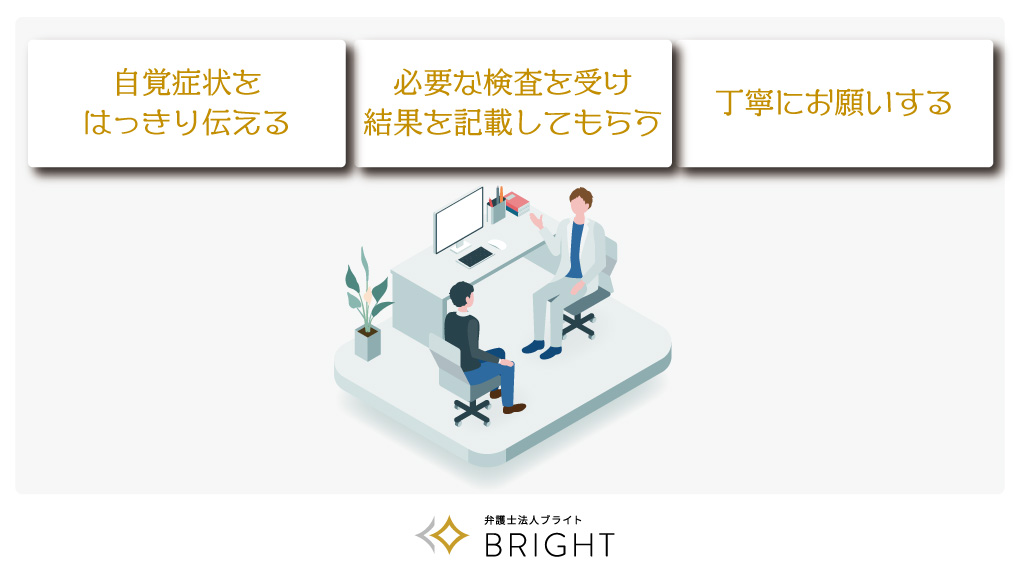自覚症状は医師にはっきりと伝えて、診断書に記入してもらう必要があります。