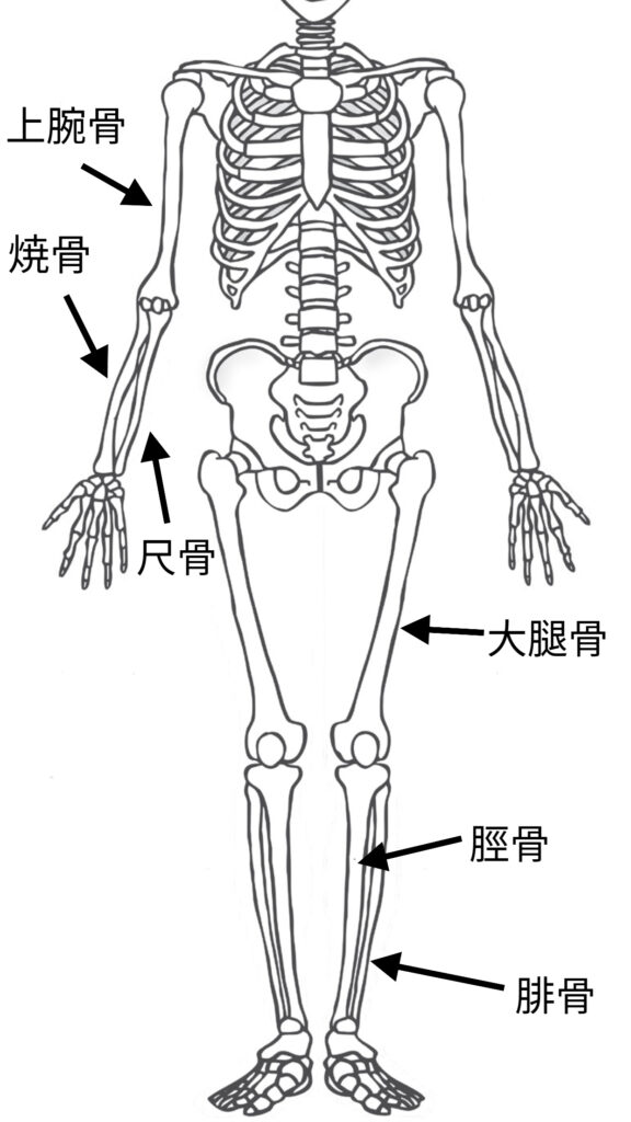 腕の上腕骨(じょうわんこつ)、橈骨(とうこつ)、尺骨(しゃっこつ)や、足の大腿骨(だいたいこつ)、腓骨(ひこつ)、脛骨(けいこつ)に変形や欠損などの障害が残る状態をいいます。
