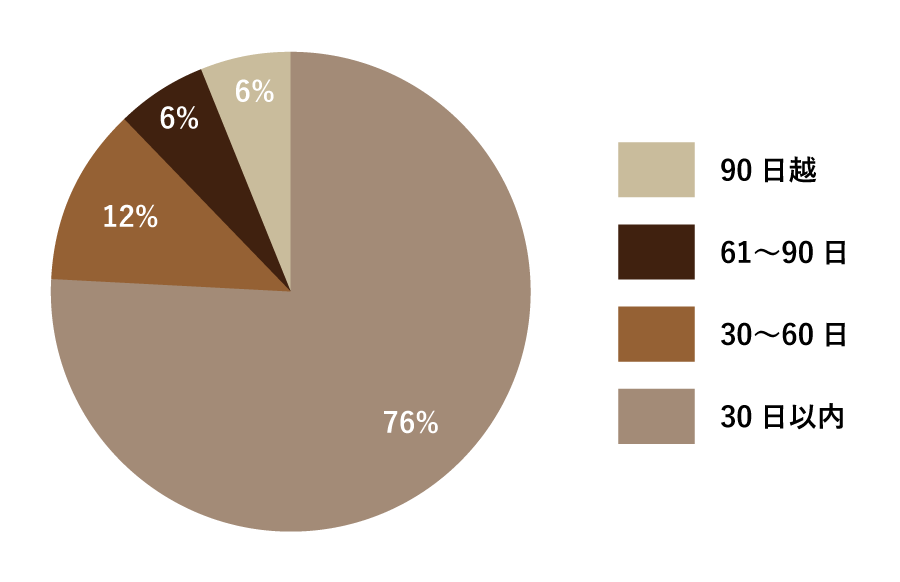 事故状況によっては一概に2ヶ月程度とは言えないこともありますが、そのようなケースも12%であり、そのうち3ヶ月を超えるケースは6%とほんのわずかです。