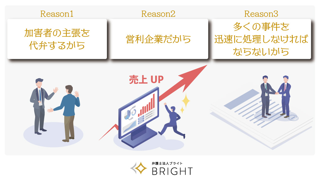 保険会社は交通事故の統計データをもとに、利益が出るように保険料を設定しています。すべての事件について被害者の主張を認めて、予想よりも保険金支払いがかさむと、思ったような利益が出ません。利益を大きくするためには、それぞれの事件で支払額をできるだけ抑える必要が出てきます。
