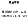 これまでの実績より、TFCC損傷を負っているのではないかと予測し、ご依頼者様にMRI検査を受けるようにアドバイスを行った。検査の結果、やはりTFCC損傷であることが判明。証拠を集め、後遺障害の申請を行ったところ、後遺障害等級12級が認定された。