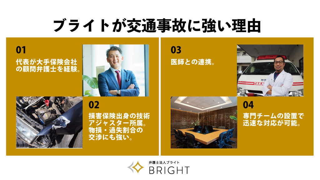 交通事故専門部を有する弁護士法人ブライトには他事務所にはない様々な強みがあります。
