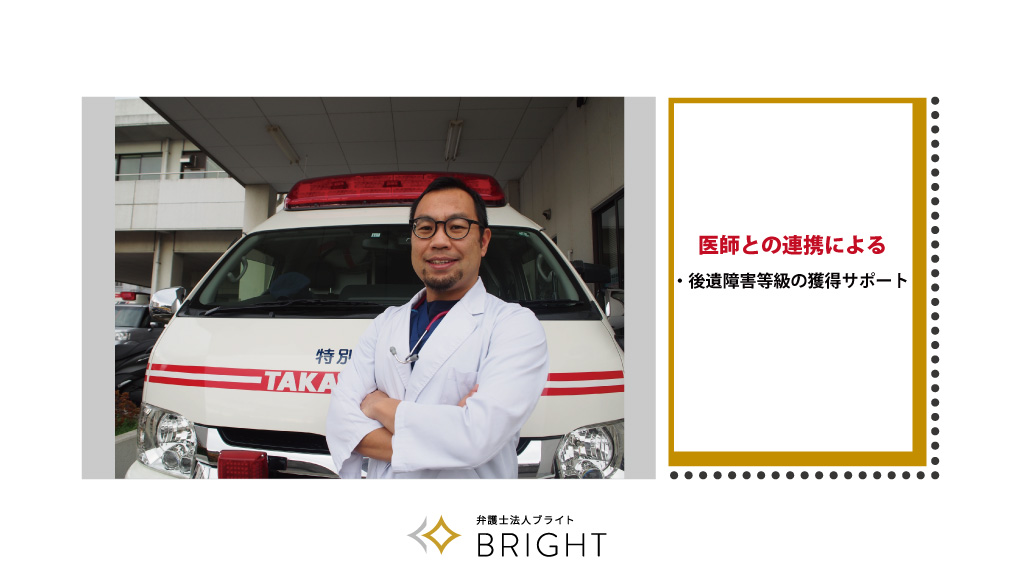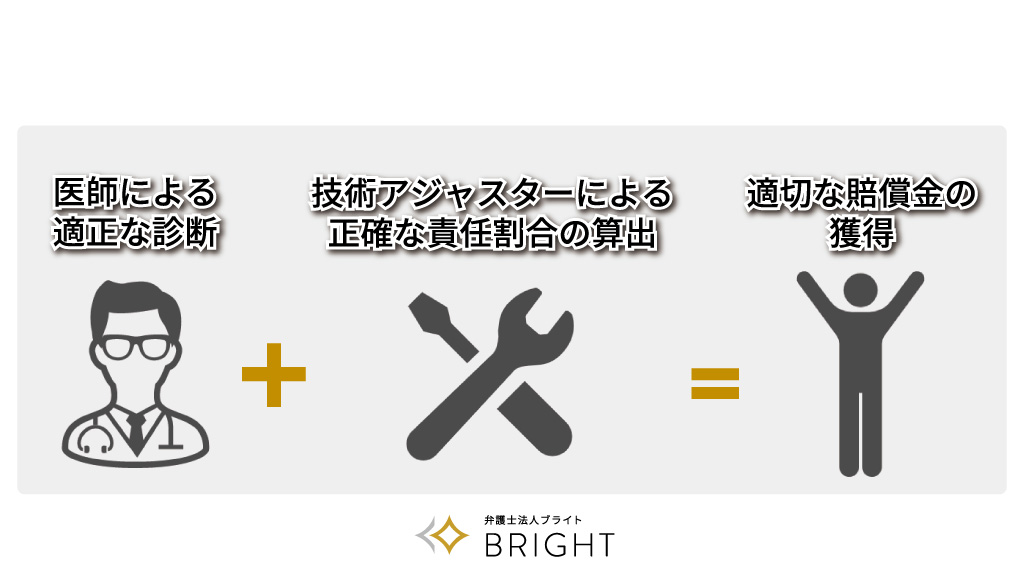 ブライトでは医師と技術アジャスター、両方と提携しているため相談者様にとって不当な示談交渉に対し、根拠を持った対応を行うことが出来ます。