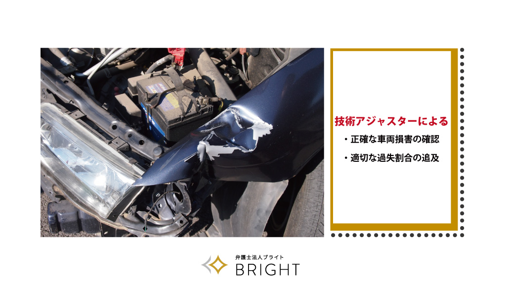 ブライトでは保険会社の技術アジャスターと提携することで技術的な視点からも事故の正確な損害を明らかにします。